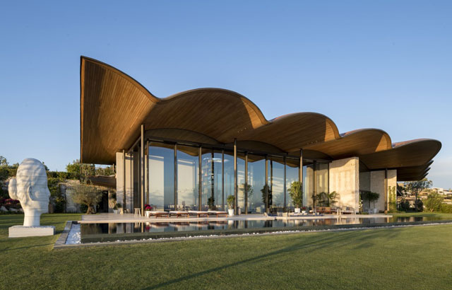 "Dolunay Villa" smeštena je na obali Egejskog mora u jugozapadnoj turskoj provinciji Muğla. Talasasti drveni krov i zidovi od stakla koji omogućavaju zapanjujući pogled na morski krajol...