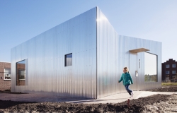 Svetlucavi zidovi obloženi aluminijumom ove male kuće u holandskom gradu Almere joj omogućava da reflektuju boje svog okruženja. Nazvana „Rebel House“, prizemna rezidencija je projektov...