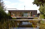 Malena drvena kuća obložena smrčom stoji na štulama iznad prirodnog bazena u Austriji