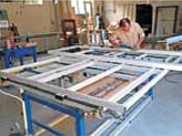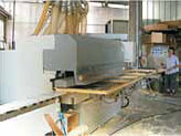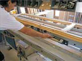 | 8. PROFILISANJE ELEMENATA Nakon čepovanja elementi se profilišu po dužini. U istom prolazu vadi se, zahvaljujući specijalnoj testeri, i lajsna za staklo (kada su u obradi elementi za krila). Ukoliko se obrađuju elementi štoka, osim profilisanja, rade se i kanali za dihtunge u istom prolazu. |