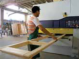 | 2. KROJENJE ELEMENATA Posle izbora lamela, prva faza proizvodnje je prerezivanje lamela na dužine po pripremljenoj krojnoj listi. Prvo se realizuju najduži elementi, a ostatak lamela koristi se za kratke elemente. |