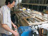 | 12. GITOVANJE Da bi se ostvario dobar kvalitet prozora, posle spoljašnjeg profilisanja, vrši se kontrola obrađenih ramova. Ona se sastoji u tome što se sa specijalnim gitom otklanjaju eventualne greške i sitni nedostaci. U nekim slučajevima nisu potrebne nikakve intervencije, a u drugim (na primer, kod obrade krila od čamovih lamela) gitovanje je neophodno zbog postizanja dobre završne obrade i zbog estetskih razloga. |