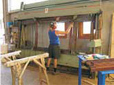 | 4. PREDBLANJANJE Ova faza je isto često preskočena iz ekonomskih razloga, jer poskupljuje proizvodnju. Nakon faze stabilizacije iskusan stolar pažljivo analizira svaki element i donosi odluku koju stranu će ravnati, kako bi eliminisao eventualne geometriske greške. Operacija se izvodi na standarnoj mašini, abrihteru. Ova operacija koliko-toliko neutrališe izražene napone i stabilizuje strukturu, dajući maksimalnu mogućnost korištenja svakog elementa. |