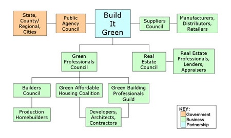 Kako bi ubrzao saradnju i razvoj na polju energetski efikasne gradnje Build It Green formira mrežu ključnih aktera građevinske industrije. Sa ulogom centralnog saveta program doprinosi unapređenju tehničkog i menadžerskog znanja, povećavajući konkurentnost na tržištu, kako za svoje članice firme, tako i za pojedine profesionalce iz struke.