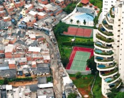 Na fotografiji pored jasno se vidi granica grada: siromašne favele Sao Paola, trećeg najmnogoljudnijeg grada na svetu, oštro su odvojene od bogatih gradskih četvrti sa terenima za tenis, bazenima, vrtnim terasama...
