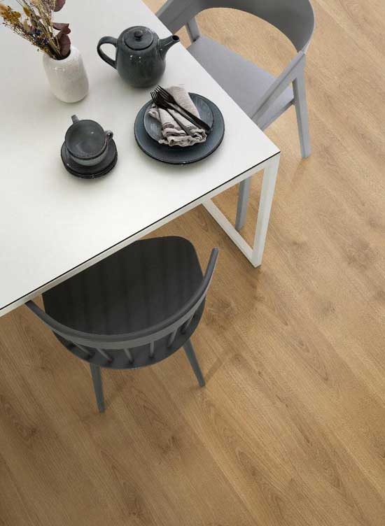 Zahvaljujući mnoštvu dekora i formata ovaj laminatni pod praktično pristaje svakoj prostoriji. Bez problema se može postaviti na podno grejanje, dok je vlagootporan Aqua+ laminatni pod idealan za vlažne uslove.