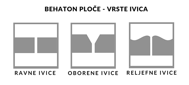 Kada se radi o ivicama, behaton ploče mogu da imaju ravne, oborene i reljefne ivice.