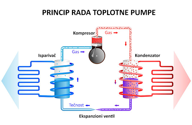 Toplotne pumpe su sistemi koji "izvlače" toplotu iz okoline i potom je pumpaju kroz sistem zagrevajući vodu koja služi za grejanje prostora ili sanitarne vode. U zavisnosti od toga iz čega izvlače toplotu razlikujemo voda-voda, vazduh-voda, zemlja-voda (među kojima razlikujemo i geotermalne) i vazduh-vazduh toplotne pumpe. Princip rada toplotnih pumpi je isti uz neke manje razlike, pa ćemo na primeru pumpi vazduh-voda da objasnimo kako funkcionišu toplotne pumpe uopšte.