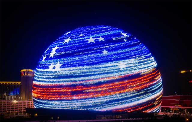 U Las Vegasu je svečano otkrivena MSG Sphere, najveća sferna struktura na svetu. Na ovoj monumentalnoj građevini, koja pokriva površinu od 54.000 kvadratnih metara, prikazane su različite slike uoči proslave Dana nezavisnosti.