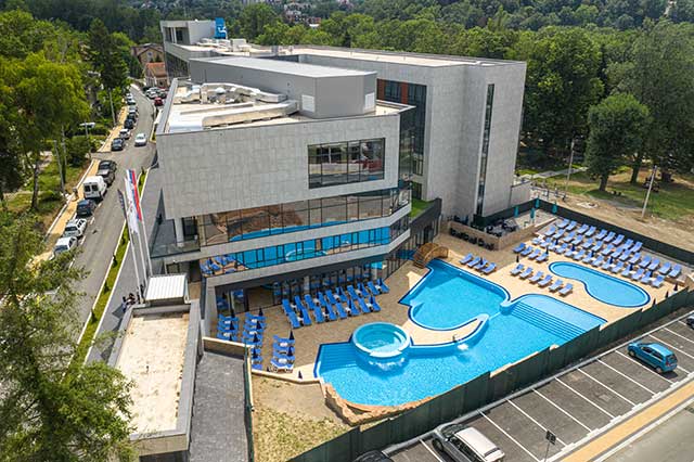 U Srbiji, mnogo bazena i spa centara je izgrađeno vrhunskim Mapei materijalima. Među njima se nalaze hotel Fruške Terme, gde su na celom kompleksu primenjena raznovrsna sistemska rešenja. Takođe, tu je i hotel i sportski kompleks Crni Vrh na Divčibarama, bazenski kompleks hotela Tonanti u Vrnjačkoj Banji, bazen u sklopu Silver Lake Resorta na Srebrnom jezeru i mnogi javni bazeni. Primena Mapei rešenja obuhvatala je različite korake kao što su reprofilacija betonske konstrukcije, hidroizolacija, postavljanje pločica, fugovanje i zaptivanje.