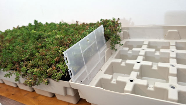Nadvišenjem supstrata u odnosu na obod kutije postiže se i to da ni jedan deo sistema, osim biljaka, ne bude u dodiru sa suncem jer bi UV zračenje moglo dovesti do ljuspanja i pucanja plastike.