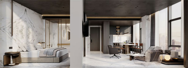 Projektovanje hotela Xadia predstavlja spoj dizajna i mudrog korišćenja zakona o zoniranju u Njujorku, kako objašnjava Marin Architects. Fokusirajući se na efikasnost, firma je uspela da pretvori manje jedinice u prostrane i dobro isplanirane.