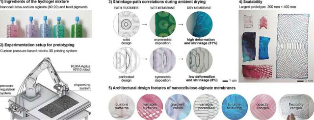U radu objavljenom u časopisu Materials and Design pod naslovom "Robotski 3D štampane arhitektonske membrane od ambijentalno sušenog celuloznog nanofibril-alginatnog hidrogela", istraživači su predstavili kako industrija građevinarstva, koja trenutno troši 50% svetskih fosilnih resursa i generiše 40% globalnog otpada, može preći na zeleniji put kroz primenu biomaterijala.
