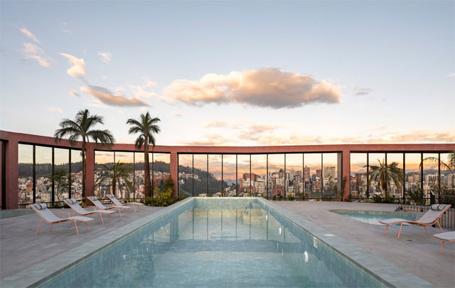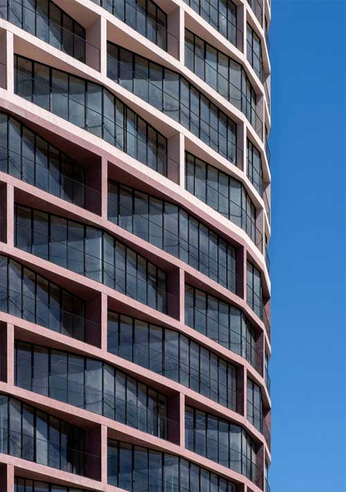 Zahvaljujući ovakvom kombinovanju elementa dobijene su spoljne terase i javni zeleni prostor na svakom spratu. Fasada nebodera sadrži duguljaste elemente od pigmentisanog betona, čija boja i tekstura aludiraju na kupole katedrala i starih kolonijalnih zgrada, prekrivenih lokalnim pločicama. Četiri različite boje su korišćene na fasadi, dodajući vizuelni identitet svakom bloku.