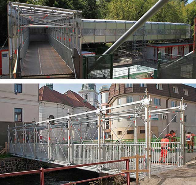 Allround sistem mostova idealan je dodatak Layher Allround skelama: uz samo nekoliko dodatnih komponenti, može se obezbediti rešenje za pešačke mostove velikog raspona ili za konstrukcije za nošenje teških tereta.