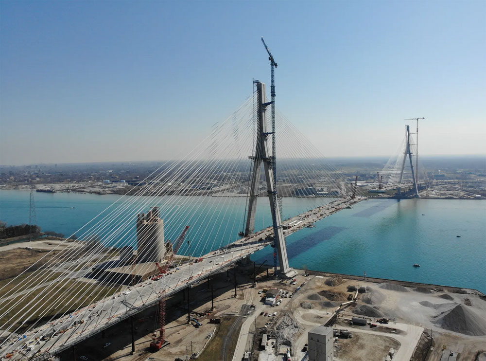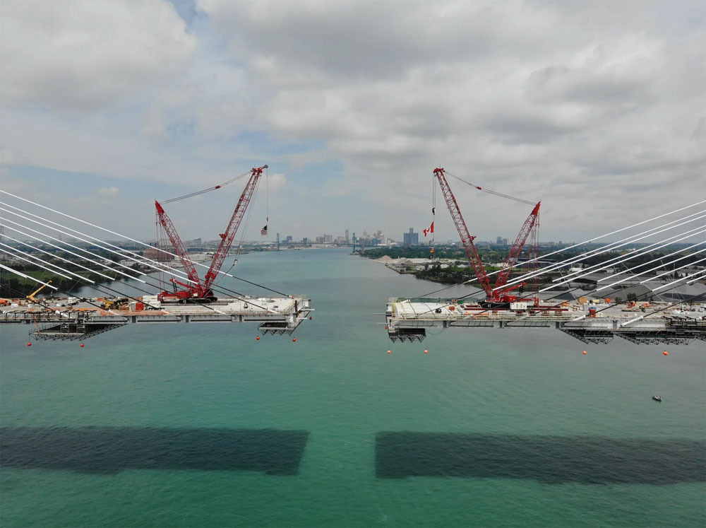 Na 46 metara iznad reke Detroit do sada je instalirano 27 segmenata mosta, svaki prosečne dužine oko 15 metara i širine 37,5 metara. Preostali segmenti će biti postavljeni narednih nedelja.