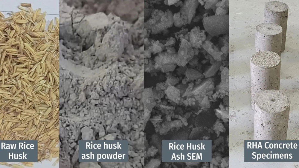 Naučnici sa deset univerziteta istražuju mogućnost korišćenja pepela od pirinčane ljuske kao delimične zamene za cement u građevinskoj industriji, kako bi pronašli ekološki prihvatljive alternative tradicionalnom cementu. Istraživački tim tvrdi da ovaj pepeo, koji je bogat silicijumom, ima hemijska svojstva koja ga čine pogodnim za zamenu cementa u betonu.