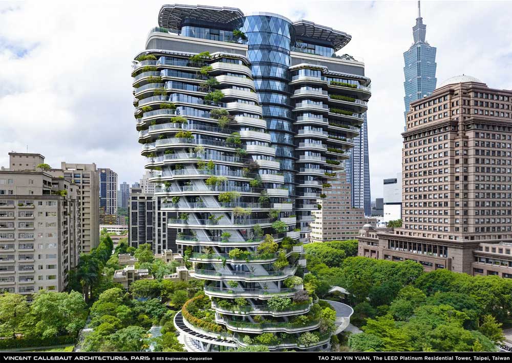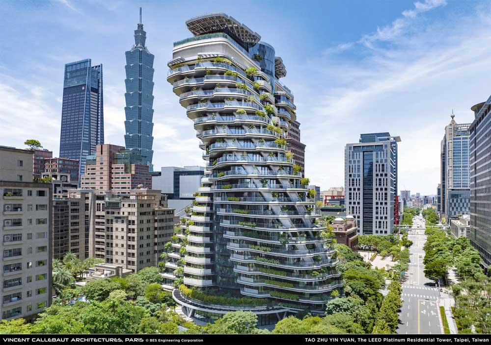 Ova neobična zgrada, visoka 93,2 metra, smeštena je u srcu Tajpeja i svojim konceptom kombinuje umetnost, arhitekturu i ekologiju.