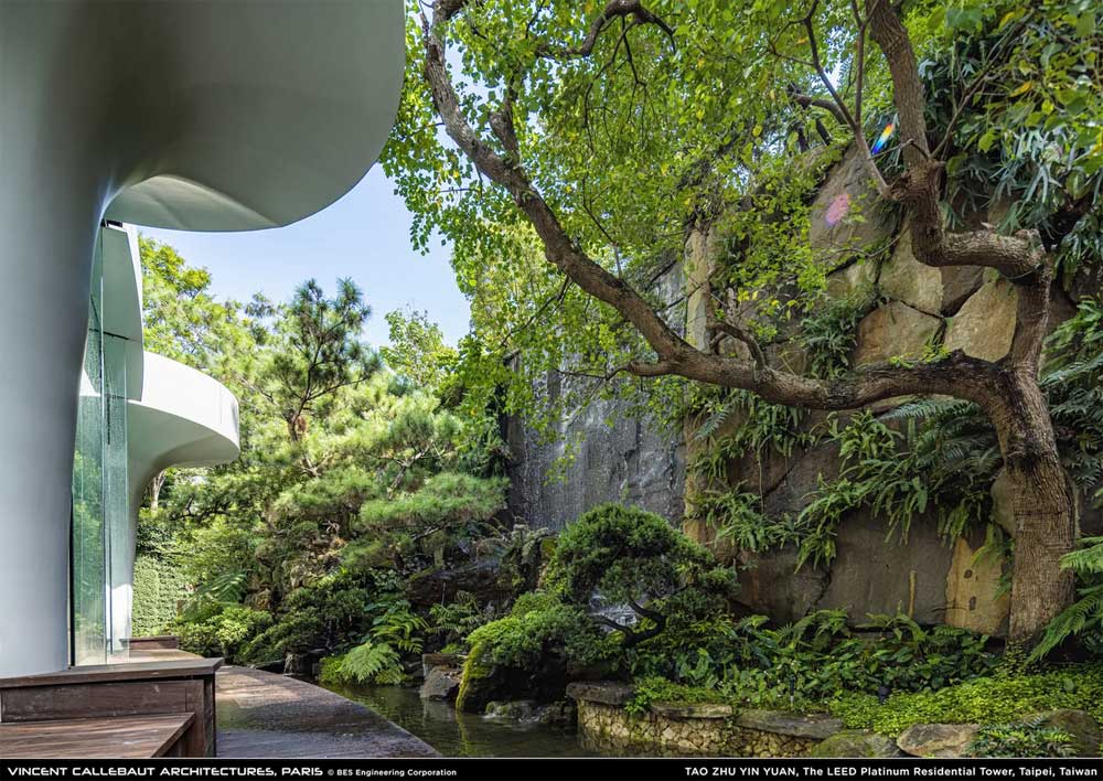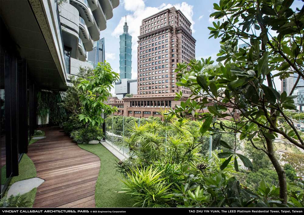 Jedan od najvažnijih aspekata Tao Zhu Yin Yuan tornja je njegova ekološka održivost. Ovaj projekat sadrži više od 23.000 biljaka, uključujući drveće, žbunje i druge vrste, koje su raspoređene na balkonima, terasama i u vrtovima unutar zgrade.