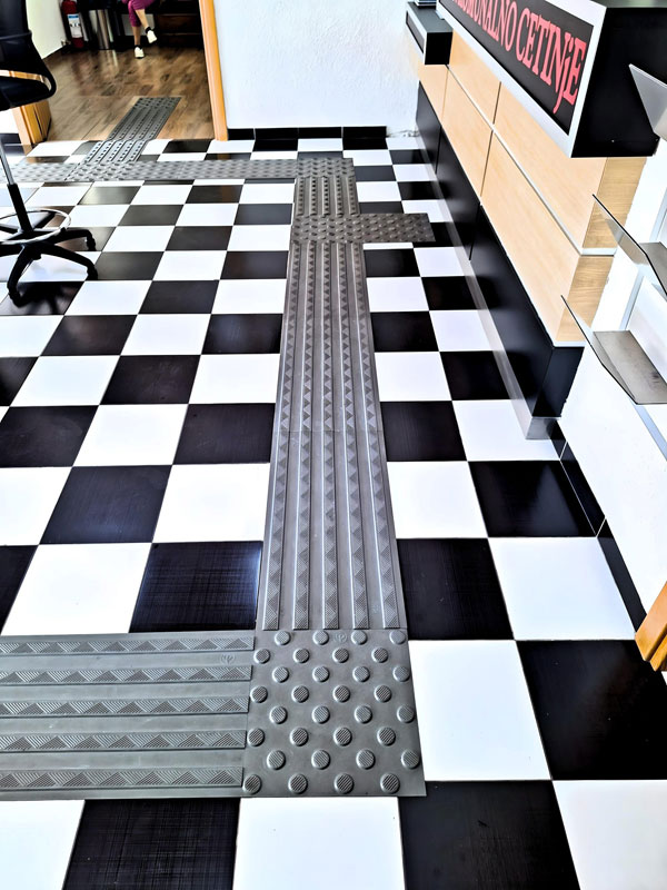 - Taktilne staze za unutrašnju i spoljašnju upotrebu, koje omogućavaju sigurno kretanje kroz različite prostore;