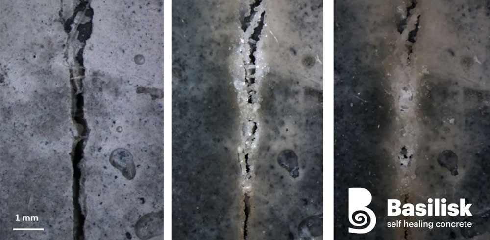 Kada se pukotina formira, bakterije proizvode krečnjak kojim se pukotine zatvaraju bez potrebe za dodatnim radovima ili dodavanjem novog betona.