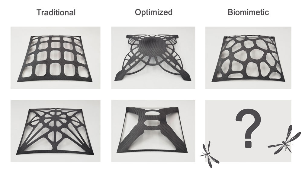 Inspiracija za ovaj novi obrazac došla je iz strukture krila vilinog konjica, gde postoje dve vrste rebara: deblja, koja pomažu u sprečavanju uvijanja, i tanja, koja obezbeđuju celokupnu strukturnu stabilnost.