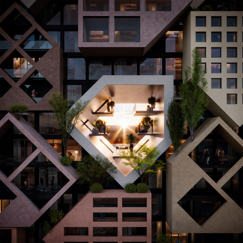 U centralnom delu zgrade naći će se veliki prazni volumen u obliku kuće, ostavljajući prostor za viseće balkone.