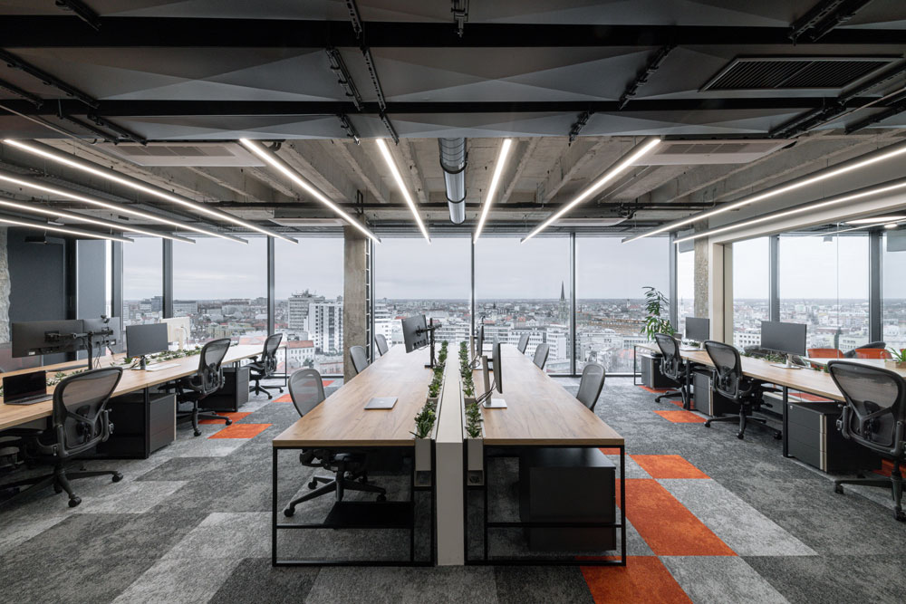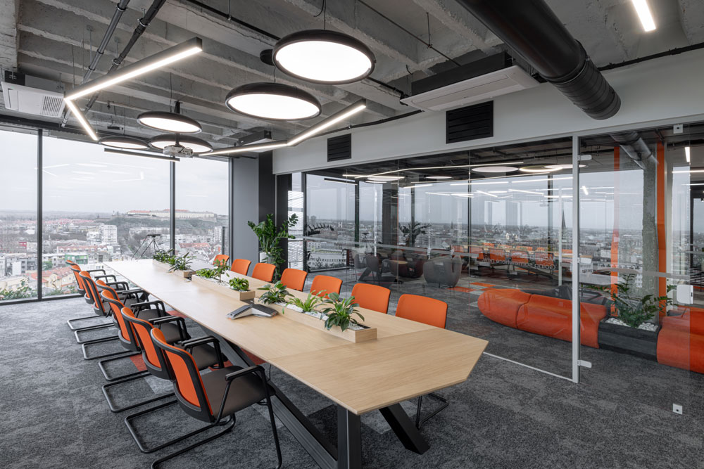 Pri tome su uzeti u obzir i jedinstveni standardi, naročito za IT kompanije u Srbiji, gde kancelarije zahtevaju više od 800 luksa, što premašuje tipične normativne vrednosti osvetljenja. To je značilo prilagođavanje osvetljenja za sve prateće prostorije.