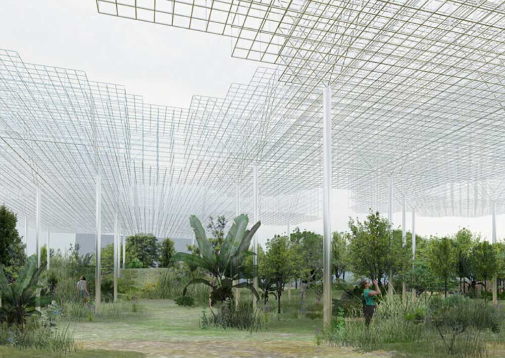 Ovaj objekat, bez tradicionalnog krova ili zidova, oblikovan je poput apstraktne šume i harmonično se uklapa u prirodno okruženje, simbolizujući koegzistenciju i uzajamno poštovanje svih oblika života.