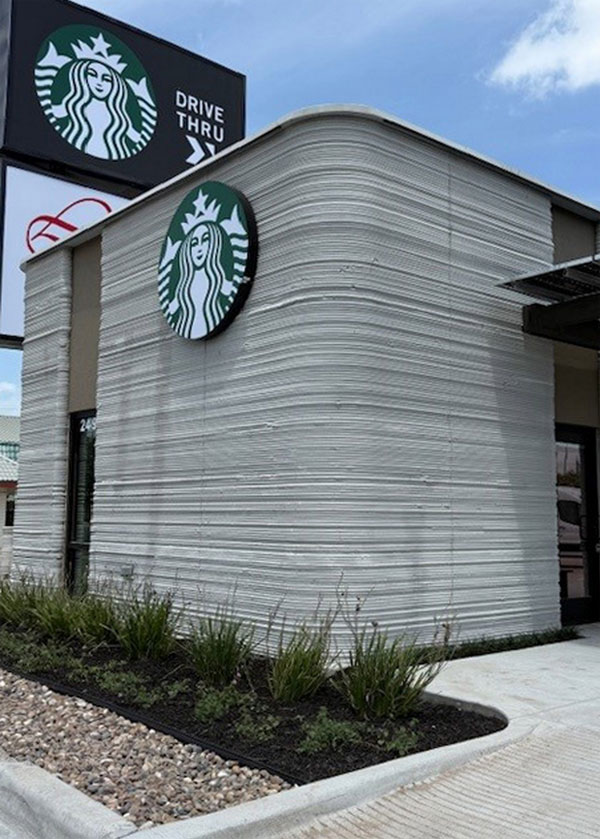 Starbucks, jedan od najpoznatijih svetskih lanaca kafeterija, otvara svoju prvu prodavnicu izgrađenu pomoću 3D štampe. Objekat se nalazi u gradu Braunsvilu, u Teksasu, i prostire se na površini od 130 kvadratnih metara.