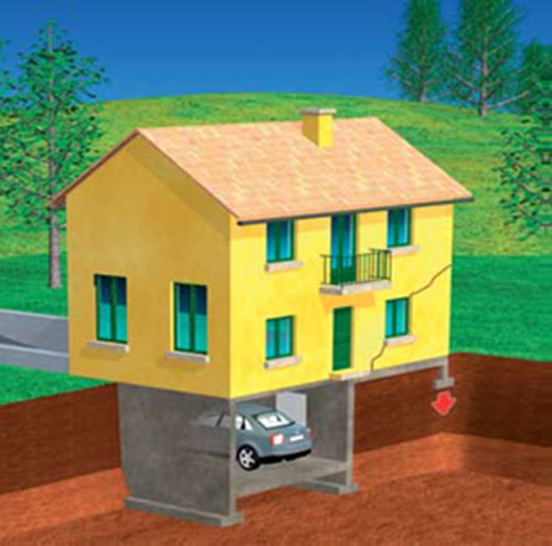Najčešći razlozi sleganja tla ispod objekata su prouzrokovani prisustvom vode usled pucanja sanitarnih cevi, loše kišne drenaže ili delovanjem podzemnih voda, vibracijama zbog saobraćaja i potresa, iskopima uz temelje objekta, uključujući i podbetoniravanje i sl.