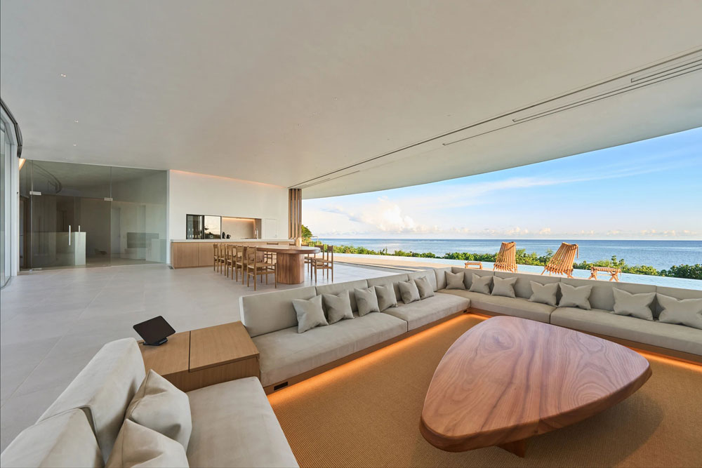 Prostor je osmišljen za uživanje u zalascima sunca, šumu talasa i obrocima koje priprema lični kuvar. Oko ovog prostora raspoređene su četiri spavaće sobe, uz bazen koji stvara optičku iluziju spoja između unutrašnjosti i prirode.
