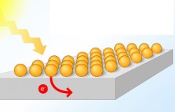 Ćelije na bazi selenida (kvantne tačke - žute kuglice) apsorbuju sunčevu energiju i prenose vrele elektrone (crvena kuglica) na provodnik od titanijum-dioksida (siva podloga)