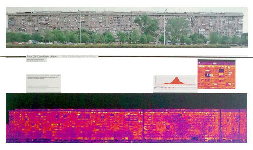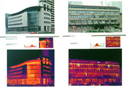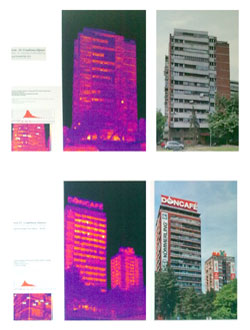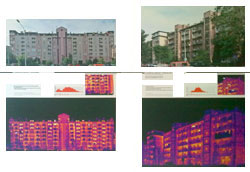 Energetske karakteristike omotača zgrada su analizirane korišćenjem termovizijskog snimanja, odnosno dobijanjem termalnih informacija uz upotrebu bezkontaktnih aparata, u ovom slučaju kamera ThermaCAM™ B20 infracrvene kamere proizvođača Flir Systems (link sasvim na dnu).
