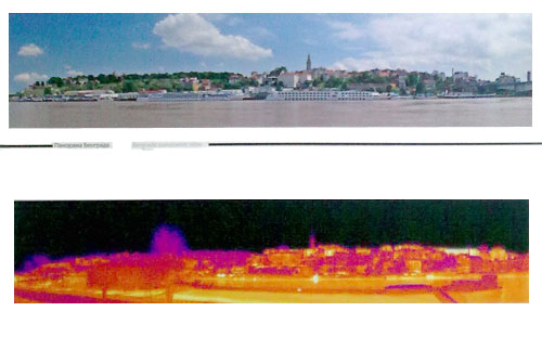 foto sasvim gore: panorama Beograda; foto iznad: Beograd viđen okom termovizijske kamere |