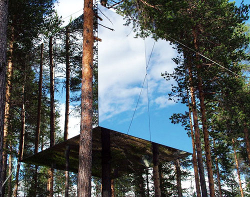 Radi se o Treehotel-u (eng. tree - drvo), koji je napravljen na severu Švedske u selu Hardask, i za sada na drveću postoje četiri kućice u koje će se smestiti gosti. Za oktobar je planirano otvaranje još dve kućice. Kućice su ispirisane različitim predmetima i stvarima iz prirode, pa jedna kućica nalikuje ptičjem gnezdu, dok je jedna nazvana ‘Mirrorcube’ i spolja je kao ogledalo.