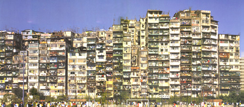 Na površini od oko 26.000m2, jedna uz drugu ređane su zgrade od 10 do 16 spratova u kojima je živelo oko 35.000 stanovnika. Kowloon je tako imao 30 puta veću gustinu naseljenosti od Menhetna u Njujorku: bez ulica, bez pristupa prirodnom svetlu, bez valjane infrastrukture...