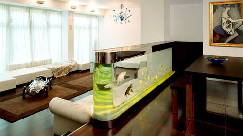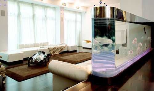 New York Times donosi detaljan tekst o novom trendu opremanja luksuznih stanova - ugradnja velikih akvarijuma. Govori se o staklenom rezervoaru zapremine preko 1.500 litara koji sa pratećom opremom košta preko 100.000 dolara. Održavanje? Oko 1.000 dolara mesečno. Naravno, ukoliko ne želite nešto još eksluzivnije - akvarijum sa morskim meduzama čije održavanje košta oko 5.000 dolara mesečno.