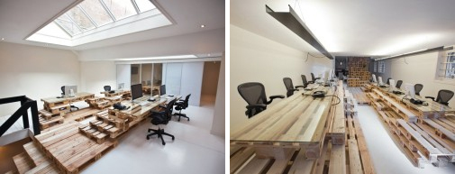 Klijent je izričito zahtevao da budu primenjeni materijali koji se mogu reciklirati što je projektantima dalo ideju da primene drvene palete.