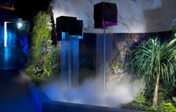 Futurističku atmosferu ublažavaju veštački vodopadi, mnoštvo biljaka, koje uspevaju zahvaljujući jakim solarnim lampama, i akvarijum zapremine 2.600 litara (foto desno).