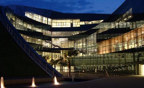 škola umetnosti u Singapuru - zgrada ima zeleni krov a staklena fasada