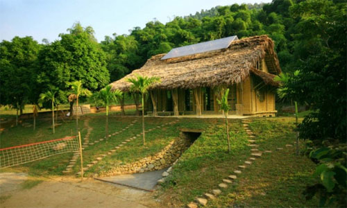 Kuća je sagrađena u potpunosti od lokalnih materijala, bambusa i naboja, ali sadrži i solarni sistem, rezervoare za sakupljanje kišnice, toplotne pumpe, LED osvetljenje, itd.