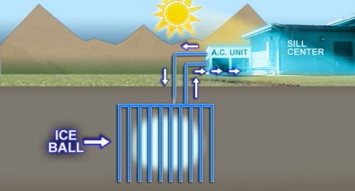 Dok se svi nadaju da zimske hladnoće prođu što pre, naučnici sa unoverziteta u Juti pokušavaju ovu hladnoću da sačuvaju i koriste je tokom narednog leta. U prvoj nedelji januara 2011. godine oni su završili sa postavljanjem eksperimentalnog sistema koji će čuvati hladnoću u velikoj ledenoj kugli u zemlji.