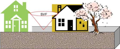 Slika 1 – Faktor viđenog neba (sky view factor – SKF), uobičajno merno sredstvo urbanih klimatologa koje služi da odredi otvorenost nekom mesta unutar urbane sredine koji ima važnu implikaciju u dolazećoj i odlazećoj radijaciji (solarnoj i terestrijalnoj), utičući tako na obrazac hlađenja i grejanja. Izvor: Prisvojeno iz Sančez-Rodrigez (Sanchez-Rodrigues R., 2005).