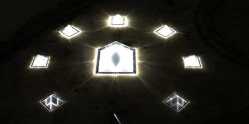 Okružujuće, manje, piramide se ponašaju kao kazaljke sata za osam faza lunarnog kalendara, svetleći u različitim kombinacijama da bi pokazale rast ili opadanje mesečevih mena. Svaka je opremljena sa energetski efikasnim LED svetlima, naravno.