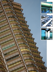 Sadržavši 83.500 m2 stainless steel profila, kao i specialno dizajniranih 33.000 panela koji zajedno čine sistem “zid-zavese” oblačeći tako kule. Izbor "stainless steel" profila ne samo da reflektuje "hi-tech" industrijski ideal u Malaziji, već ujedno i žudnju za tropskog sunca.