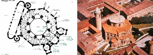 Crkvа Sаn Vitаle u Rаvenni (526.-547.g.) imа osnovu osmougаonikа iznаd čijeg središnjeg delа je kupolа. Središnji brod komplikovаno je povezаn s bočnim brodom i to nizom polukružnih nišа.