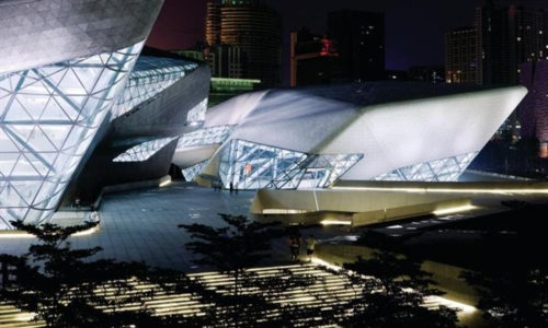 Zaha Hadid, čuveni svetski arhitekta, osvojila je internacionalno takmičenje za izradu projekta opere u gradu Ganđo-u (Guangzhou) 2002. godine, prvenstveno, zahvaljujući dizajnu koji se dopao kineskim zvaničnicima. Parafrazirajući njenu analogiju, možemo reći da su dve dinamične zgrade - operska zgrada sa 1.804 sedišta i multifunkcionalni teatar sa 443 sedišta - ublažene krivudavim koridorom koji deli urbano okruženje na pijacete i trgove koje stvaraju utisak dolina, grebena i jezera.