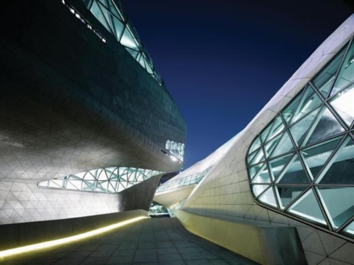 Prema spoljašnosti, zgrade su definisane njihovom dinamičnom strukturalnom fasadom, koja je pokrivena trougaonim pločicama napravljenim od stakla i belog i crnog granita. Fasadni omotač kombinuje parametričnu geometriju sa tradicionalnim metodama, kao što je livenje glavnih konstruktivnih čvorova od čelika, i njihovo zasvođenje na odvojen ram od betona koji čini glavnu salu unutar objekta.