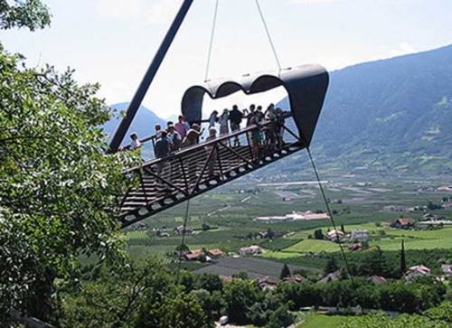 Ova čelična platforma omogućava posetiocima da posmatraju zamak Trauttsmandorff, na severu Italije, zajedno sa prelepim vrtom i okolnim pejzažem. Za dizajn platforme zaslužan je arhitekta Matteo Thun, a njen oblik podseća na naočare koje se koriste prilikom posmatranja opere, i ima providan pod.